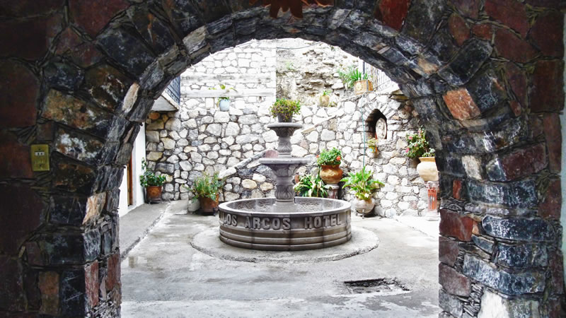 Cerca del mercado y a unas calles del templo se encuentra el hotel “Los Arcos”, un hotel con una vista privilegiada del pueblo mágico Real de Catorce.