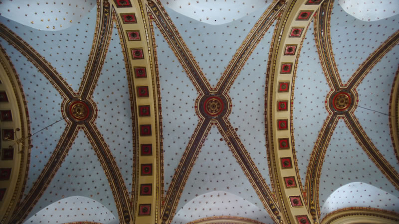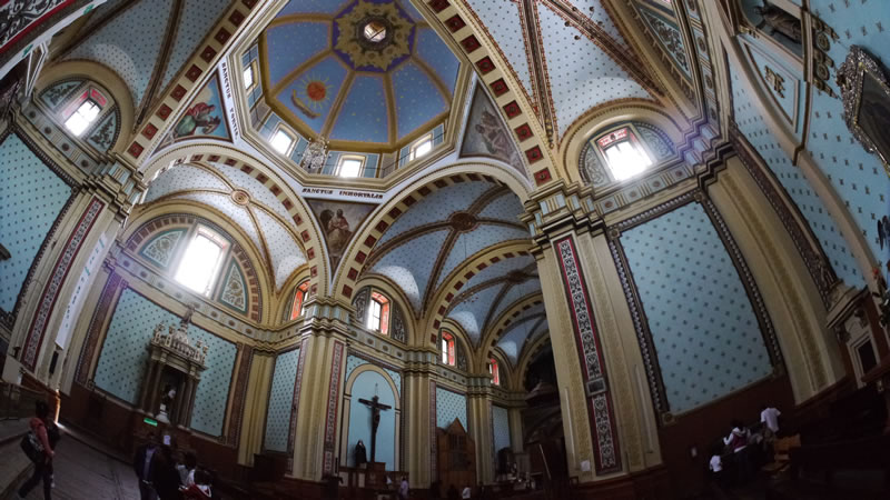 Las dimensiones tomadas de su interior son: Longitud— 53 metros. Latitud— 13.24 metros. Altura de las bóvedas— 17.40 metros. Altura del Cimborrio— 32.40 Mts.
