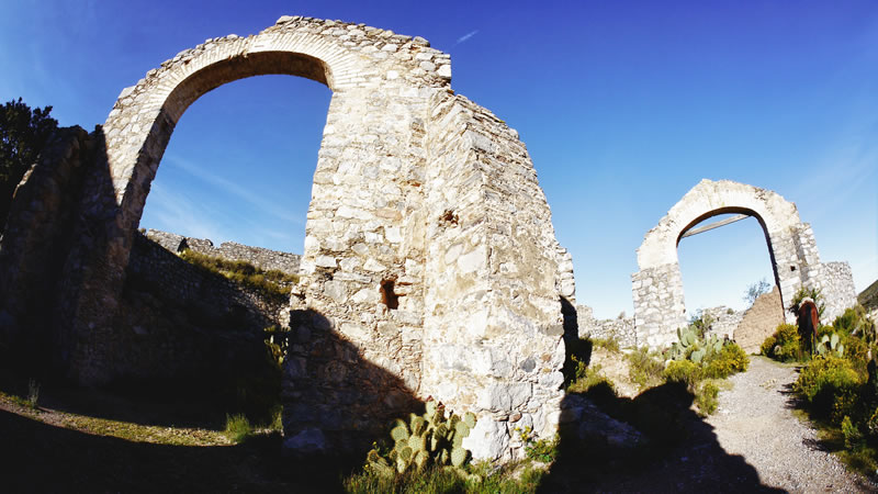 Desde el poblado, pueden identificarse las instalaciones del pueblo fantasma porque uno de sus grandes edificios aparenta una enorme cabeza de apache mirando al cielo, por lo que en diversas ocasiones se le ha identificado también a este cerro como del apache.